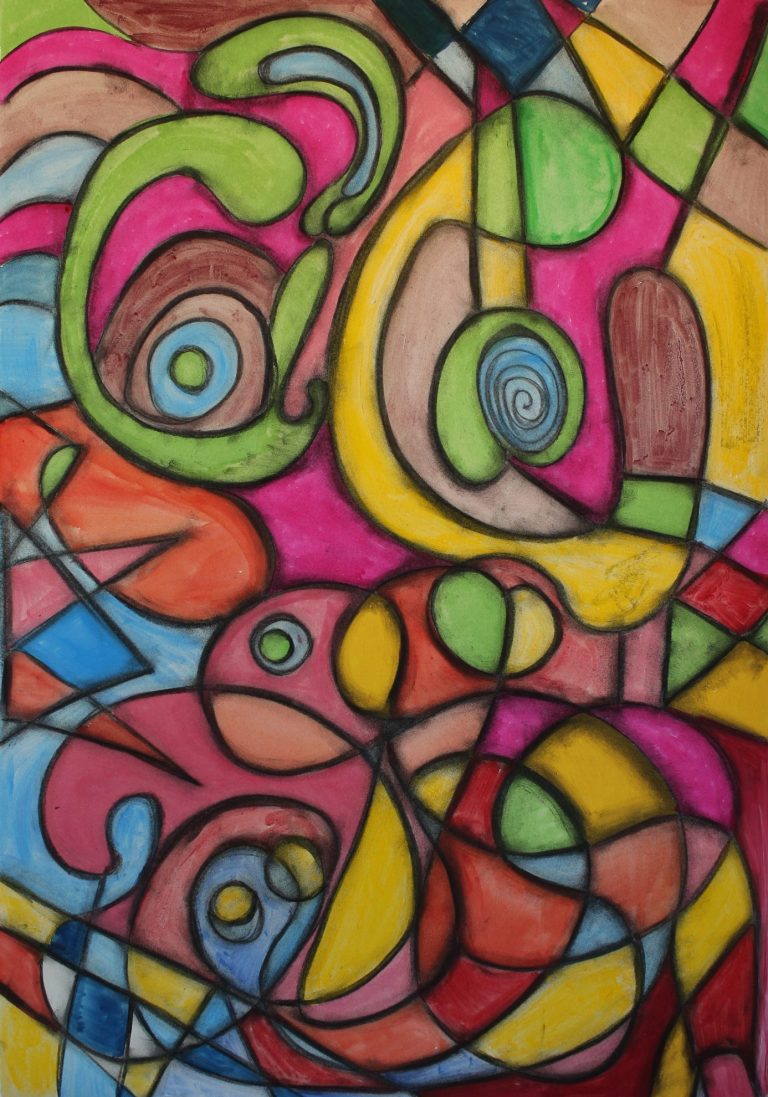 Grafik mit Kratztechnik und Untermalung auf Canva 2016